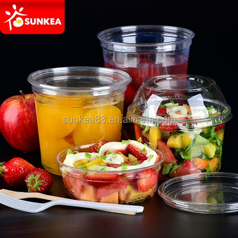 Gran gran corte de frutas vegetales ensalada PET taza de plástico con tapa