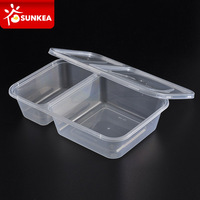 Contenedor de plástico desechable para alimentos con dos compartimentos